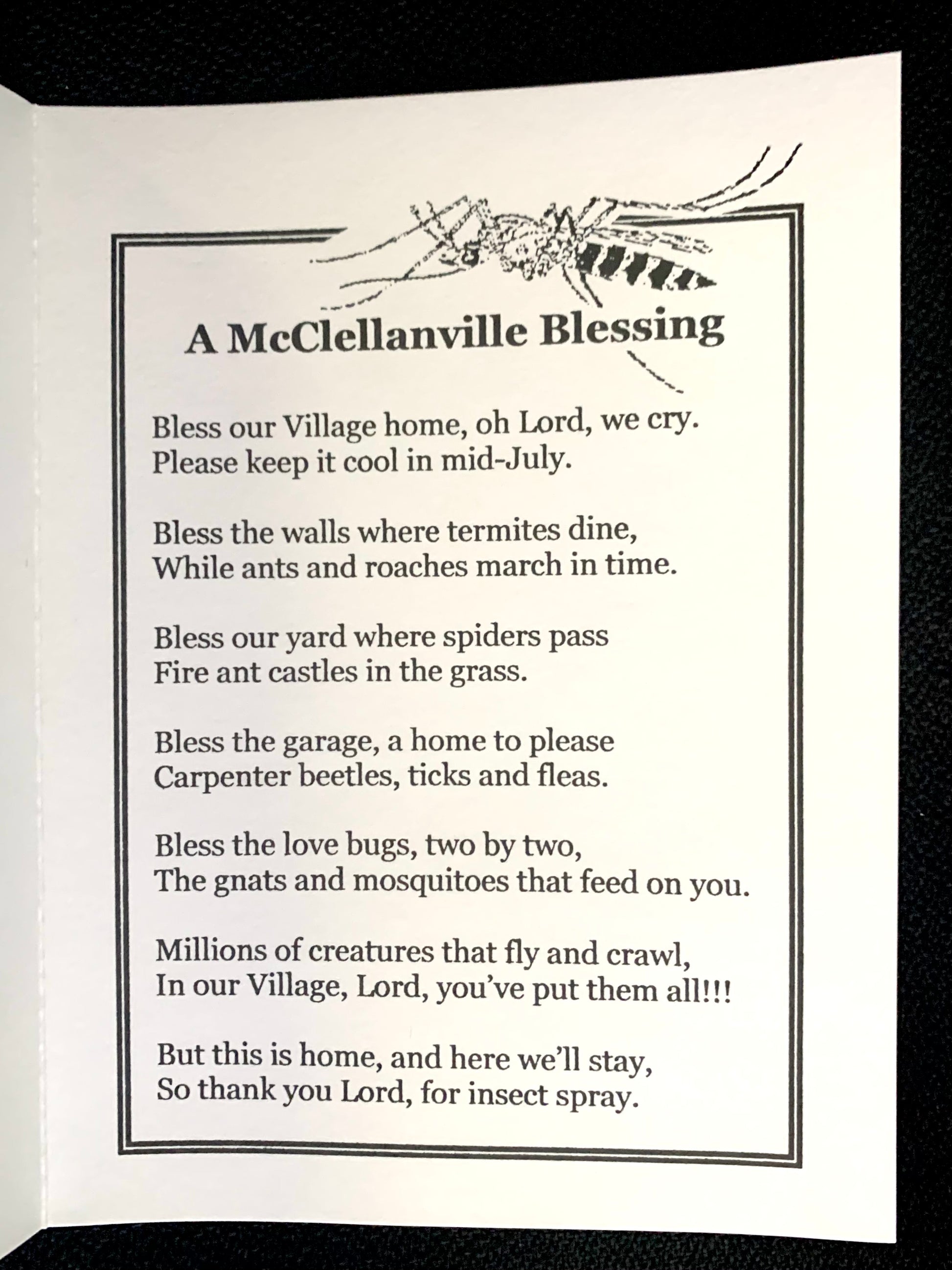 Mosquito season is almost upon us! Time for A McClellanville Blessing: